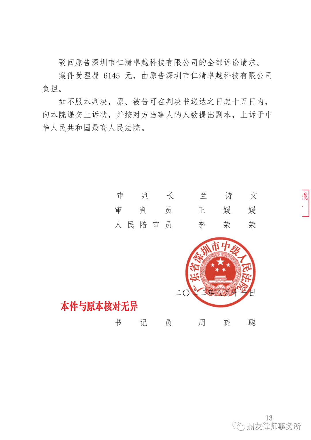 中秋佳节来临之际,鼎友收到一份来自深圳市中级人民法院最好的中秋节礼物--(2022)粤 03 民初 78 号民事判决书。